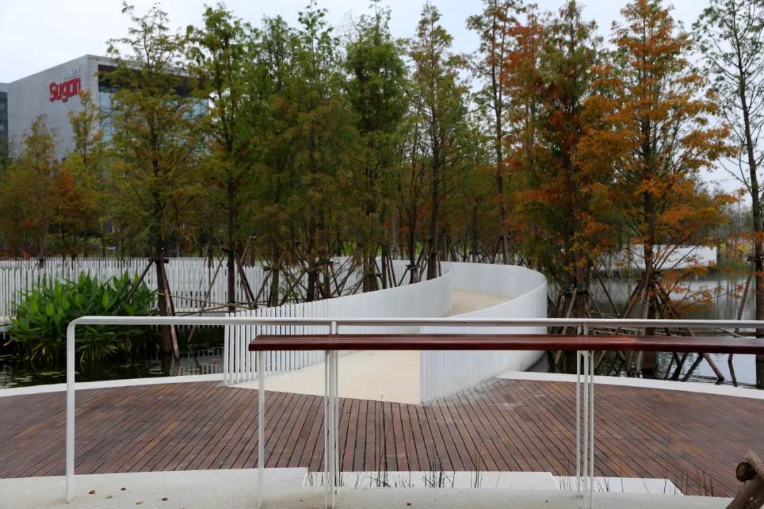 天府新區不僅僅對湖心島做了地形的處理,同時根據湖心島的高程、與水的關系配置了植物群落以及蜿蜒的弧形岸線等設計,使得湖心島的生物越來越豐富。